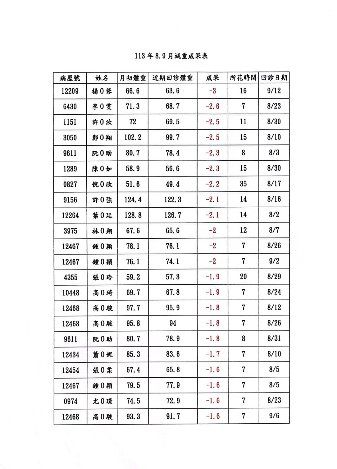 113年8.9月減重成果/